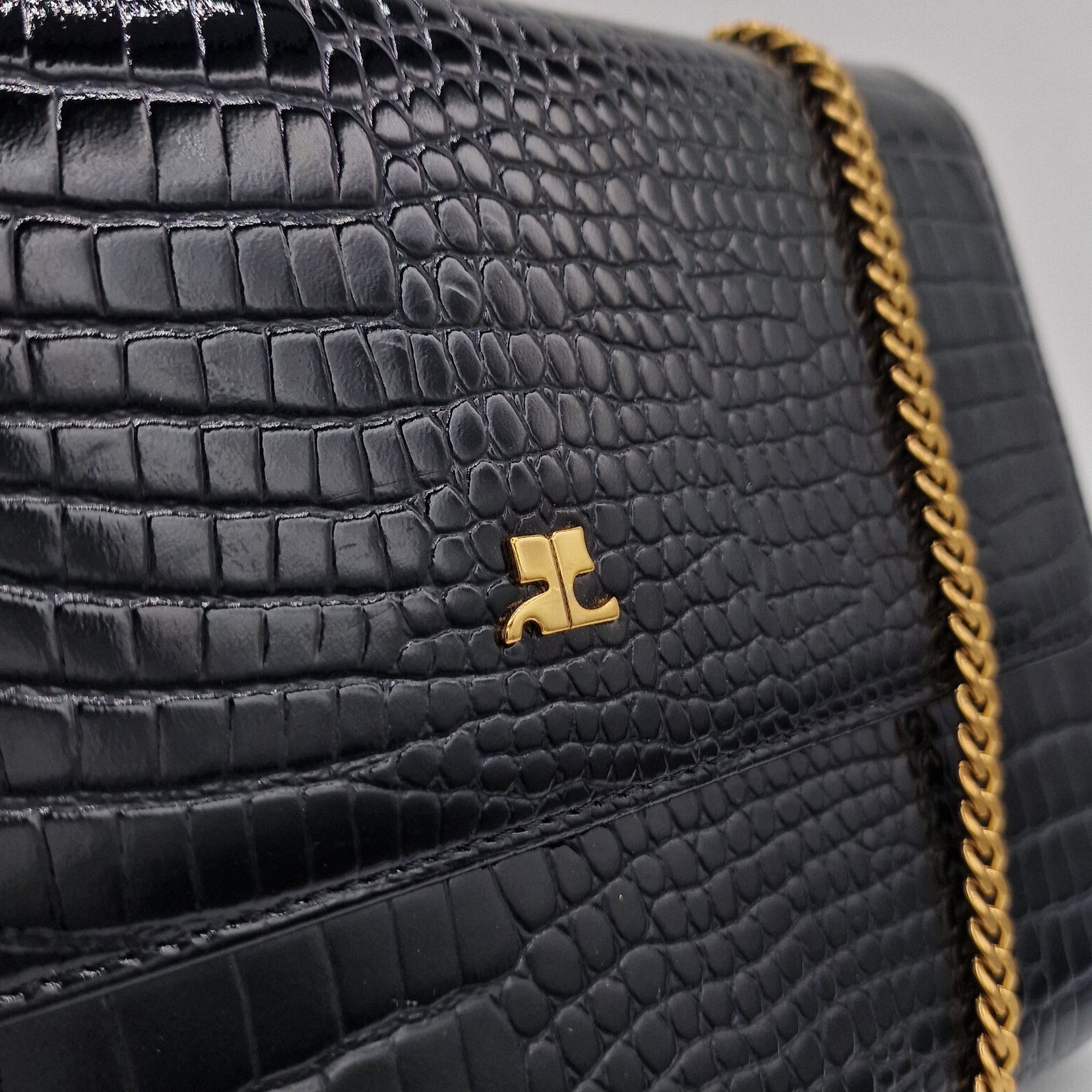 Stunning Courrèges clutch bag with crocodile embossing.