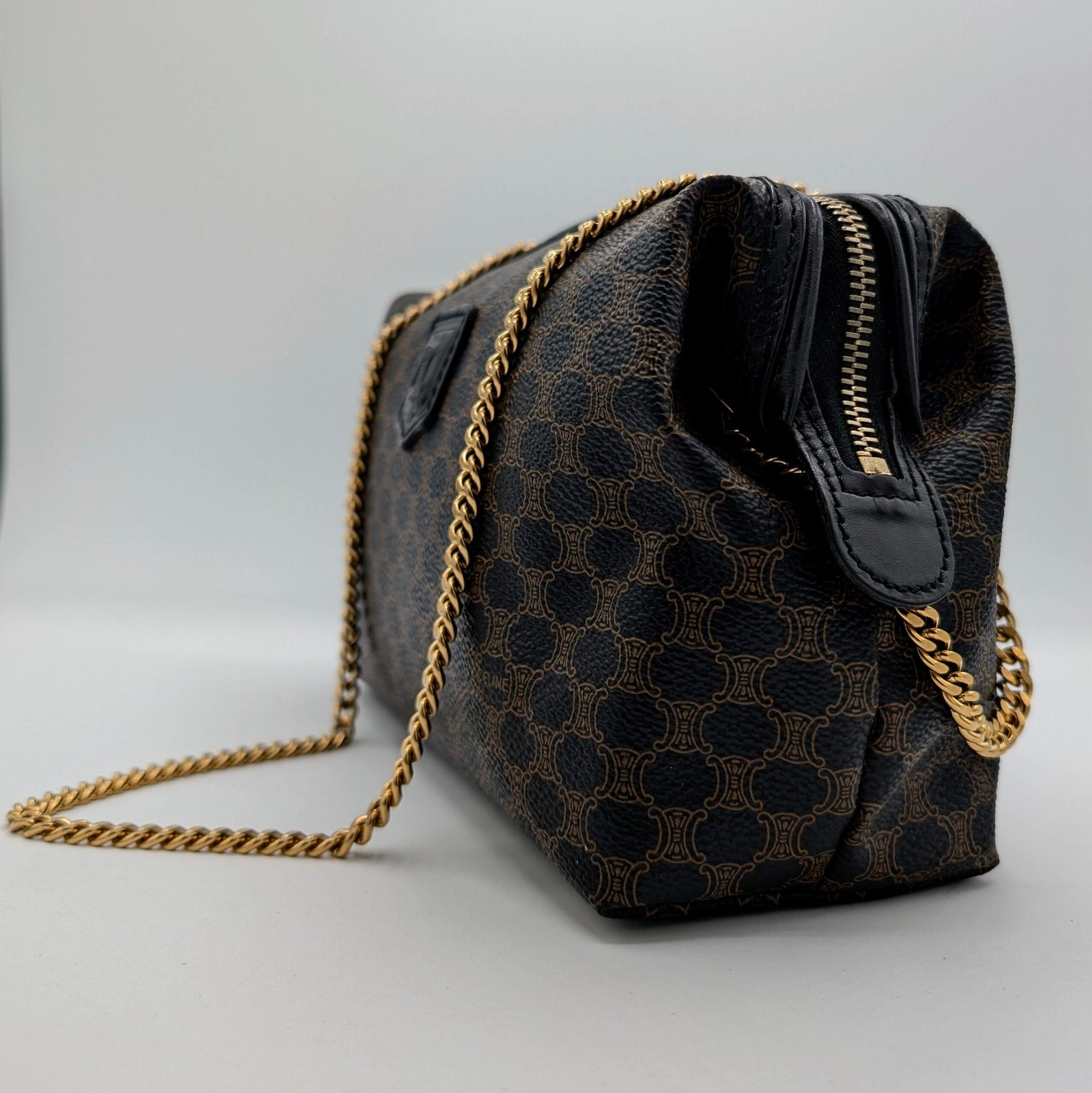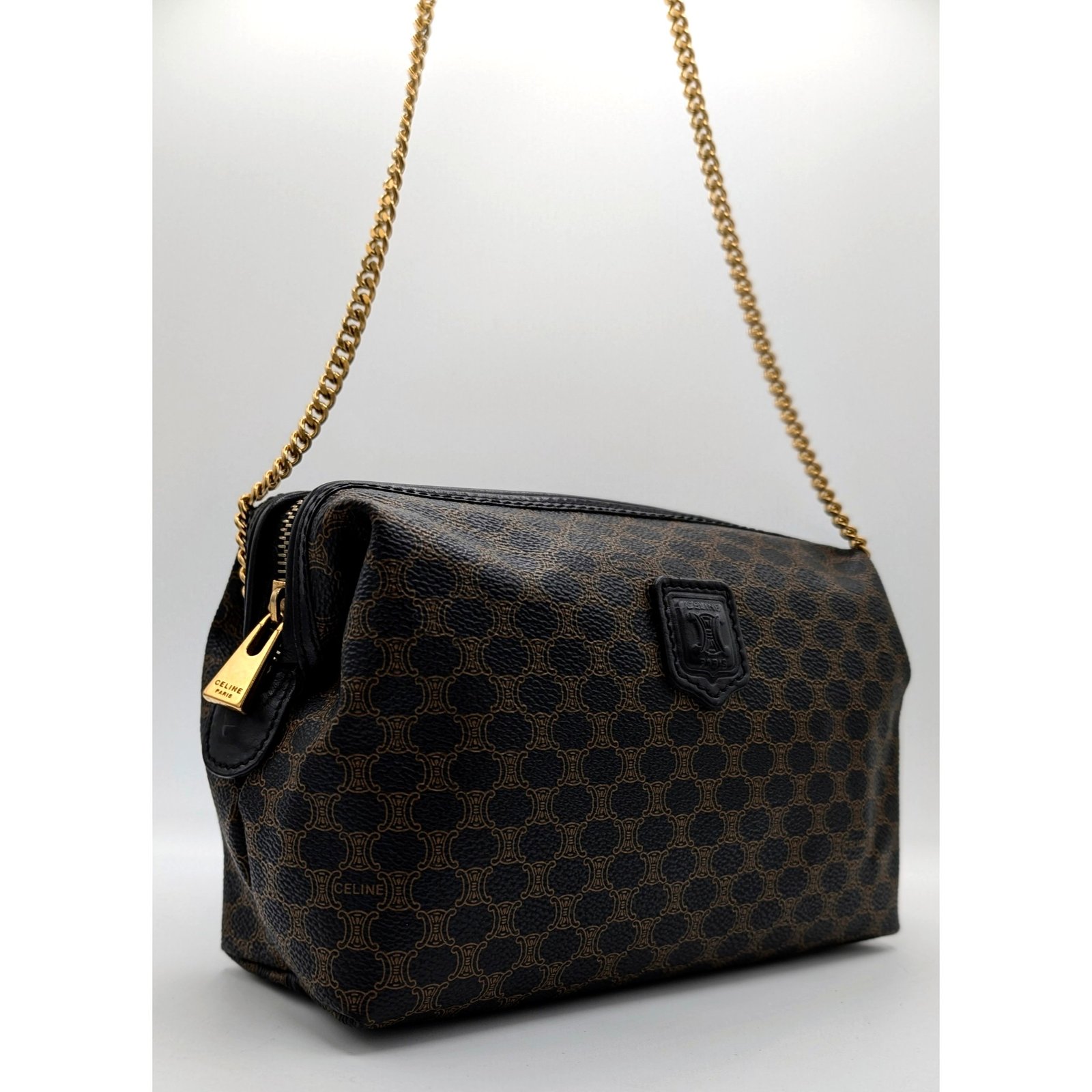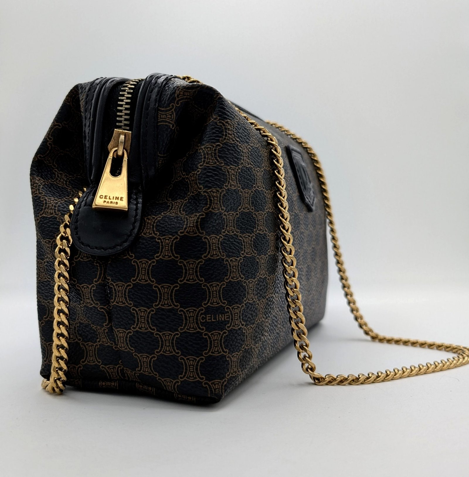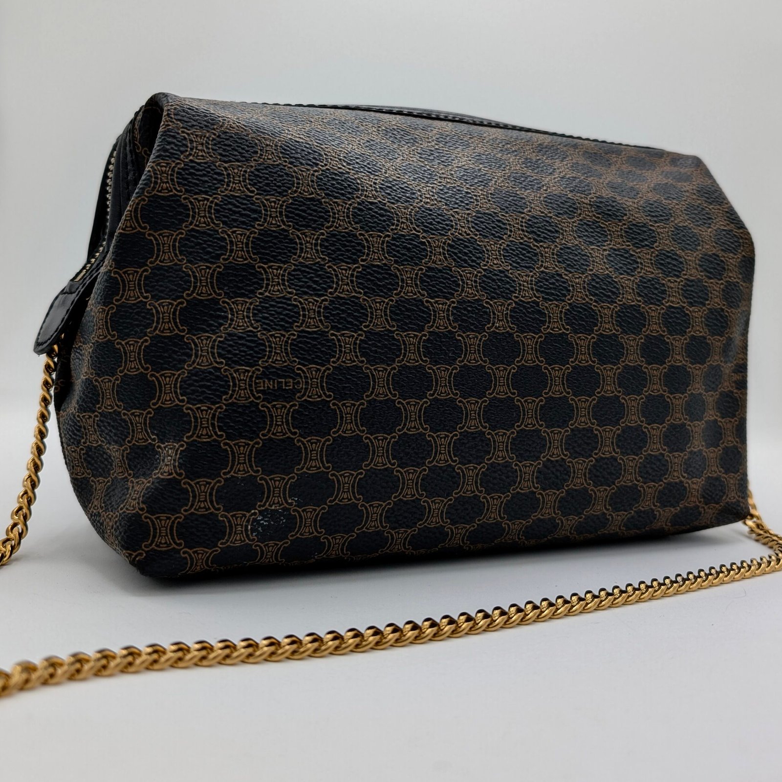 Céline Triomphe monogrammed clutch.