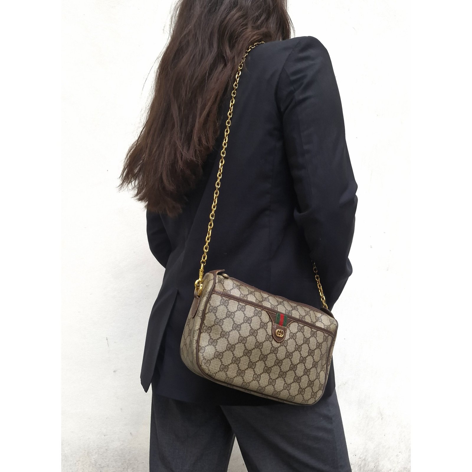 Beautiful Gucci shoulder bag in GG canvas.
