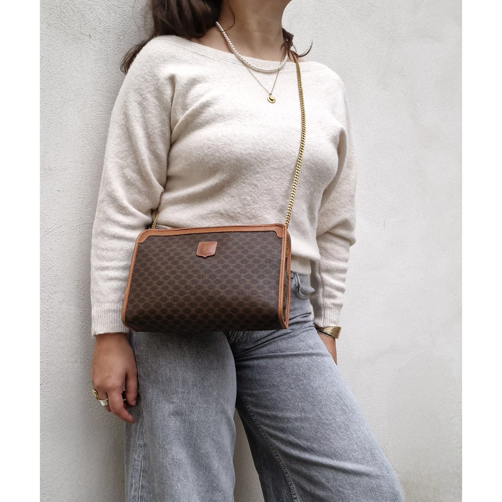 Superb Celine Triomphe clutch bag.