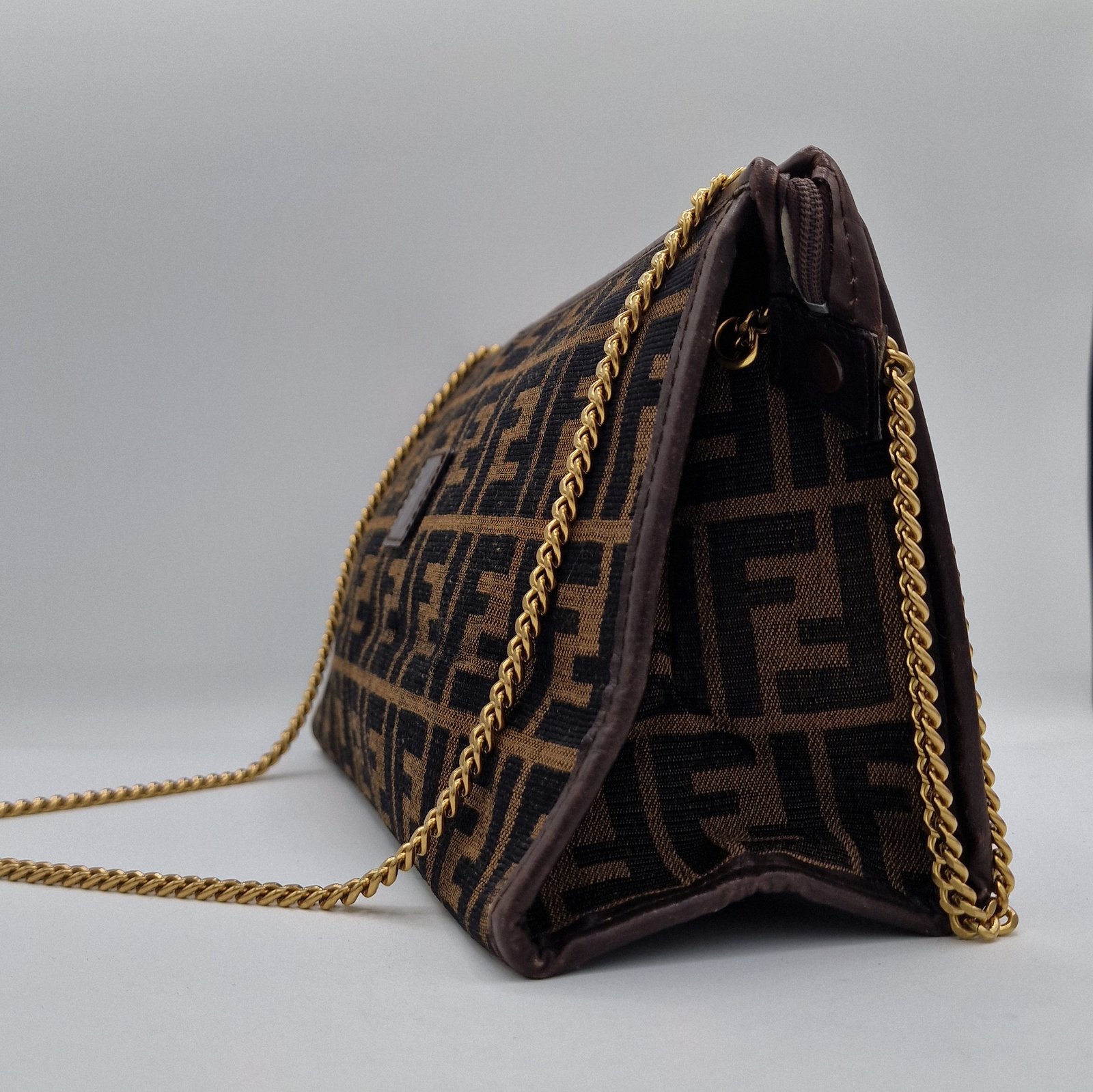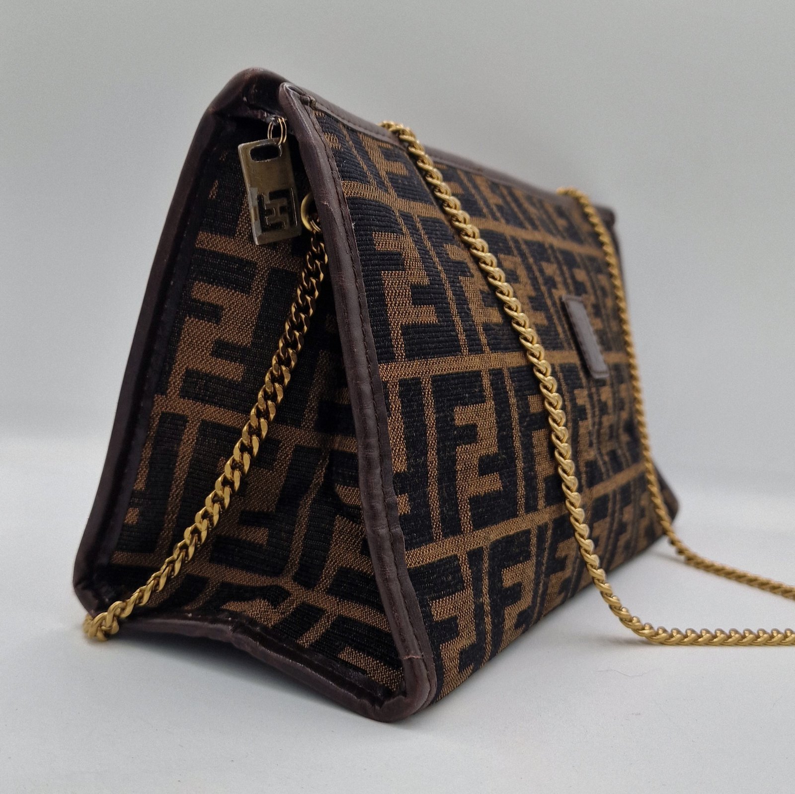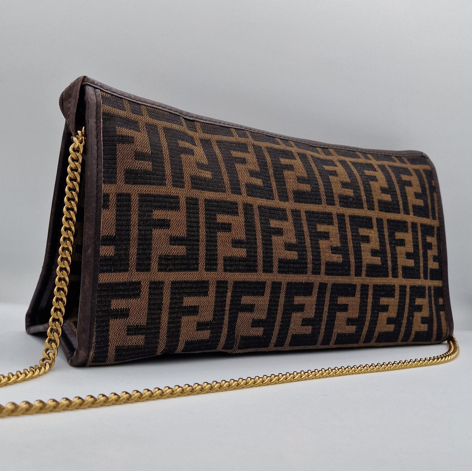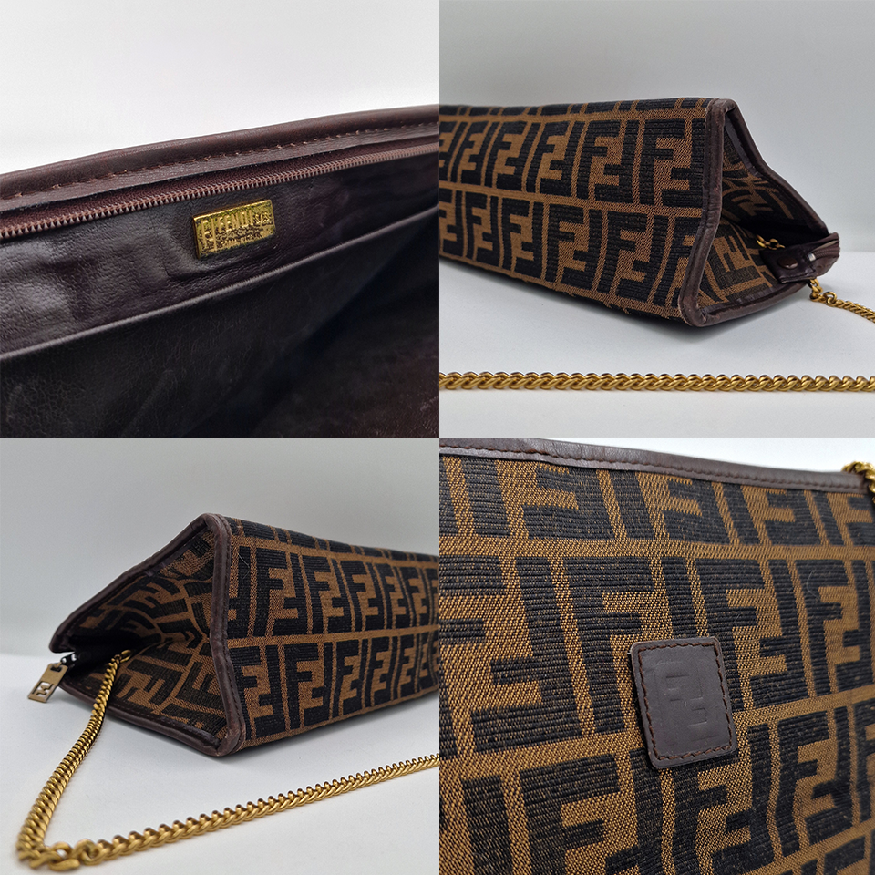 Beautiful Fendi Zucca FF clutch bag. Tone-on-tone brown color.