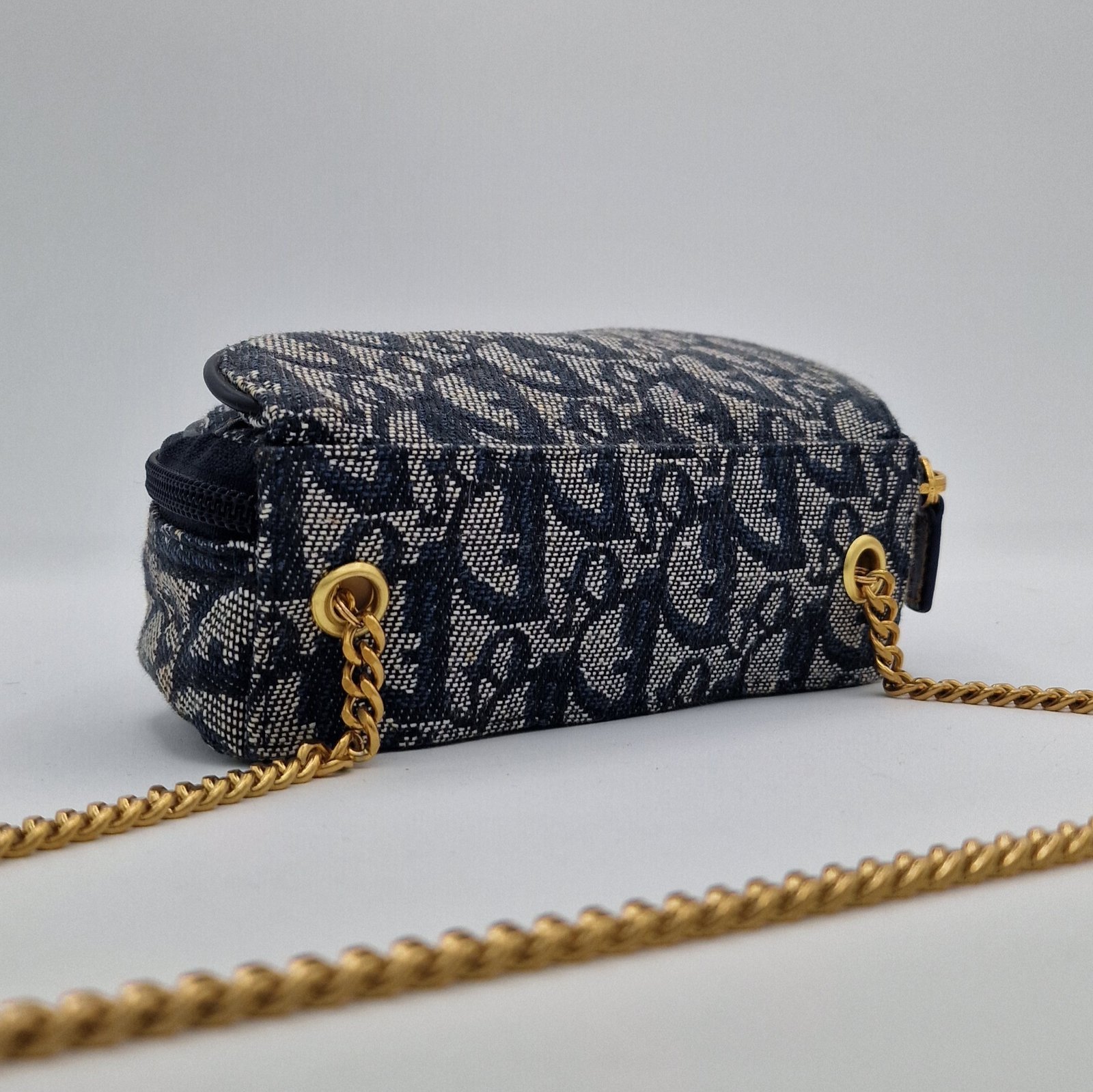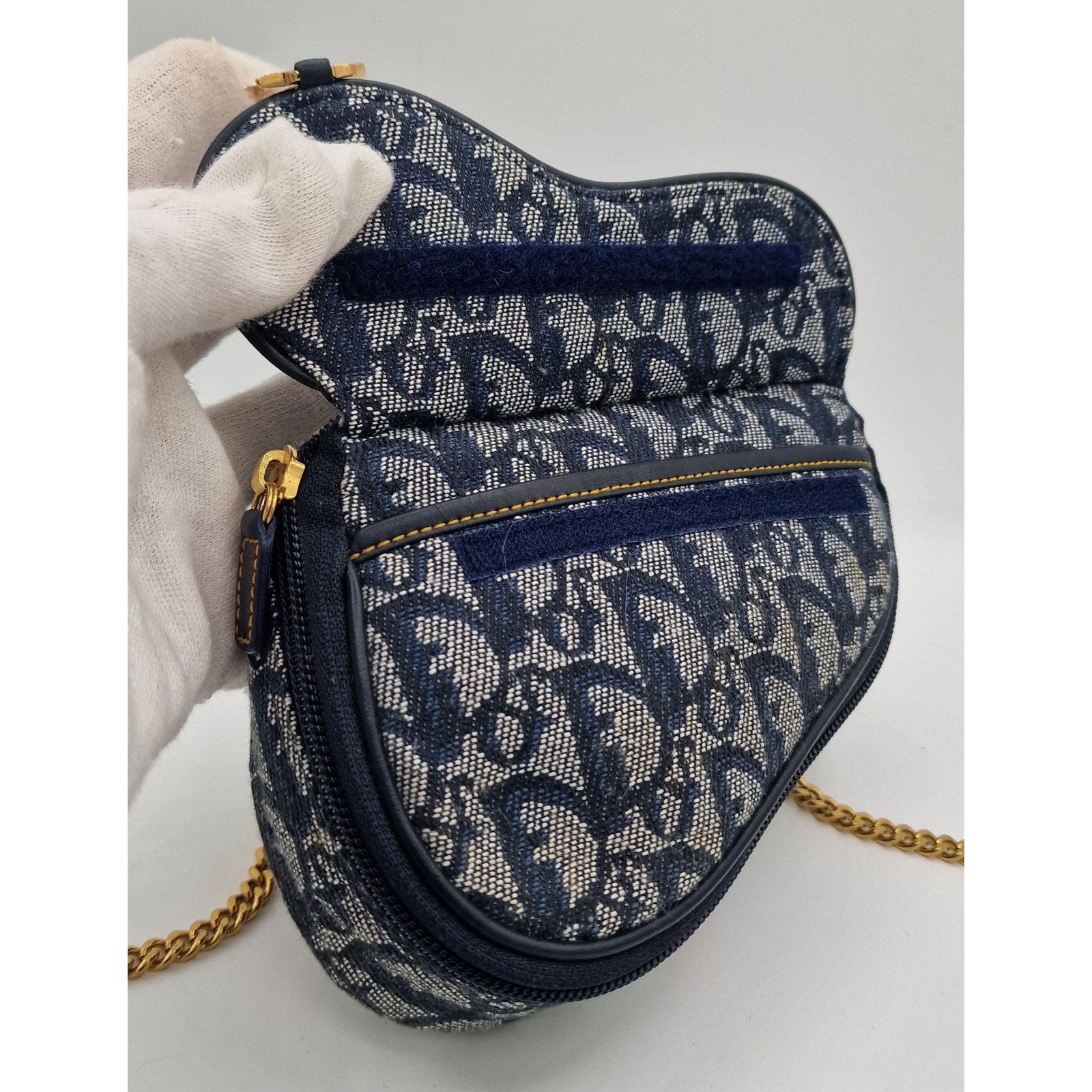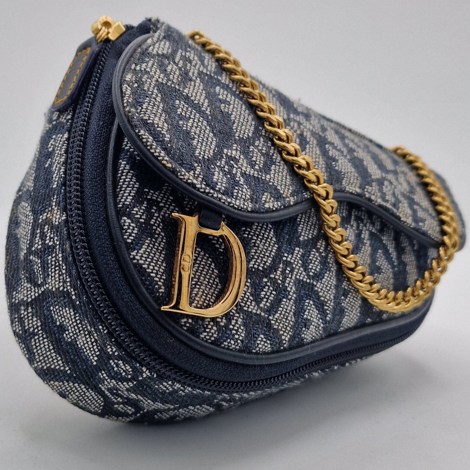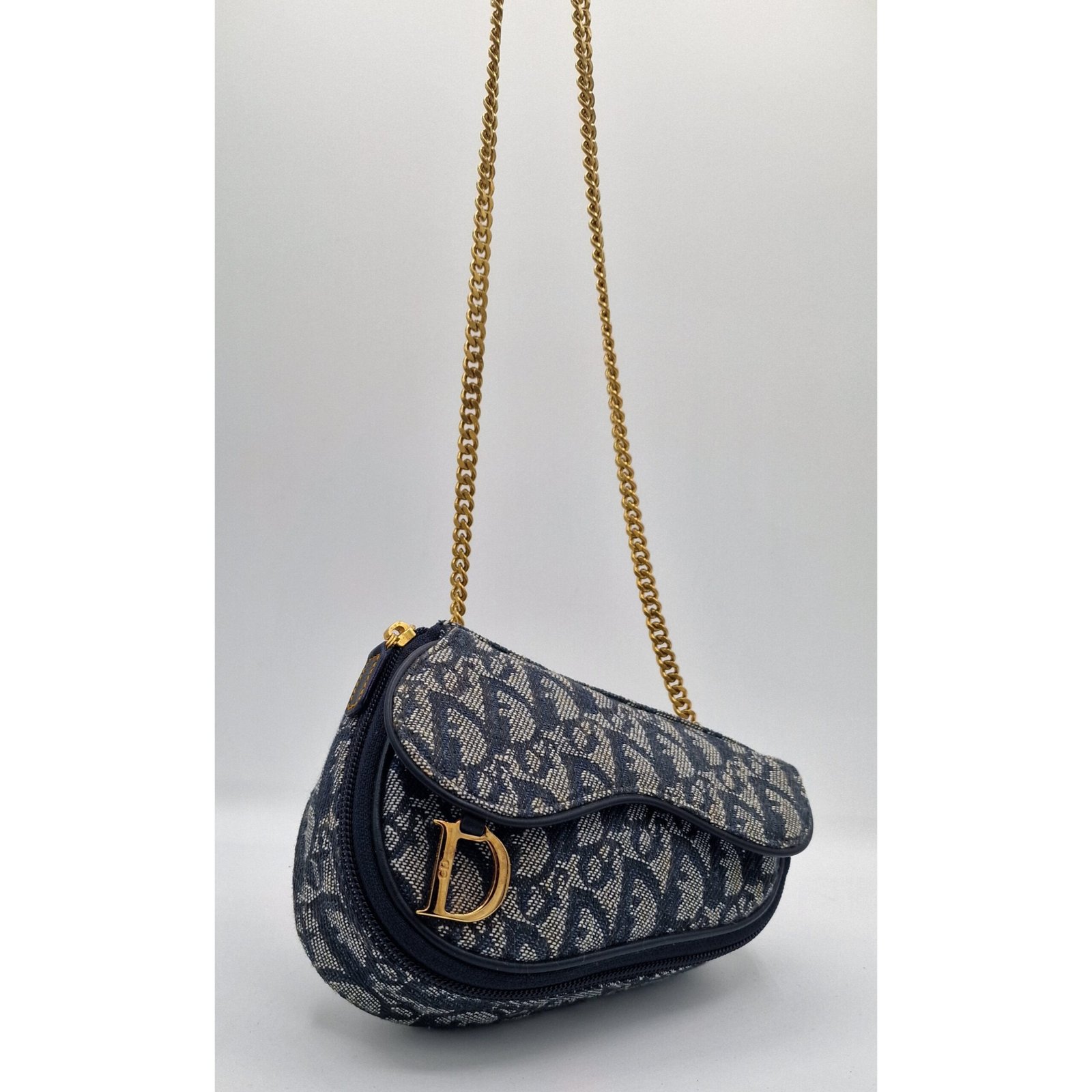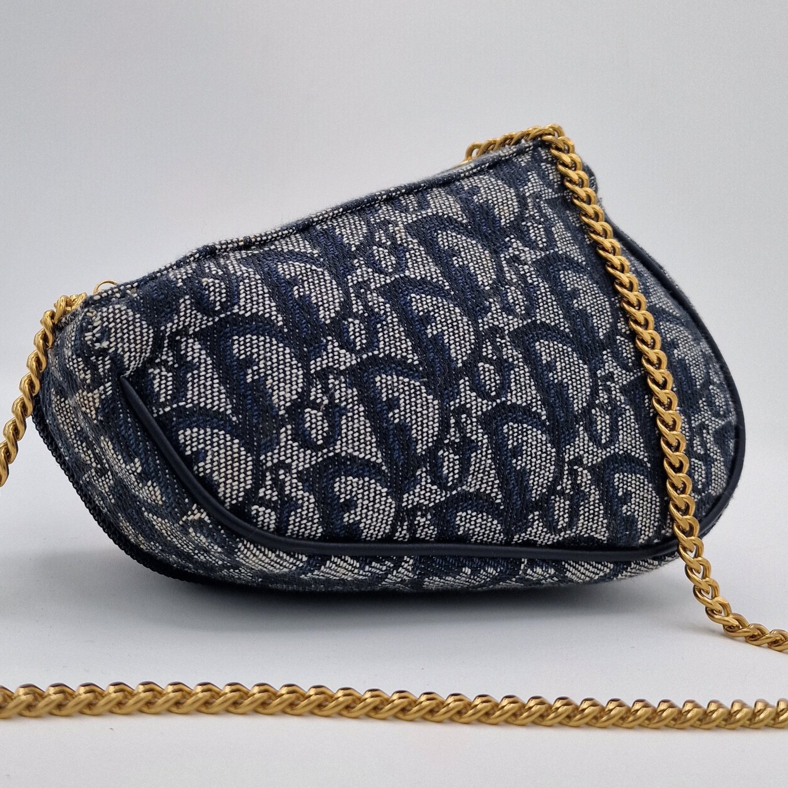 Superb Dior Oblique Saddle Clutch Bag with gold charm.