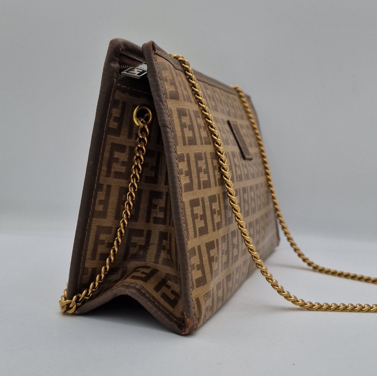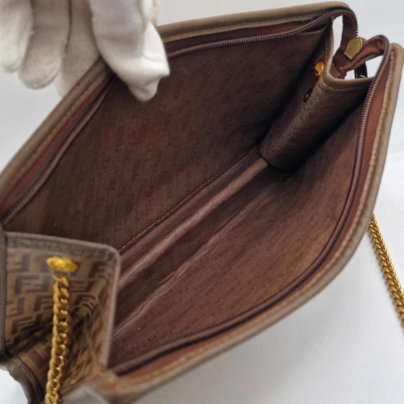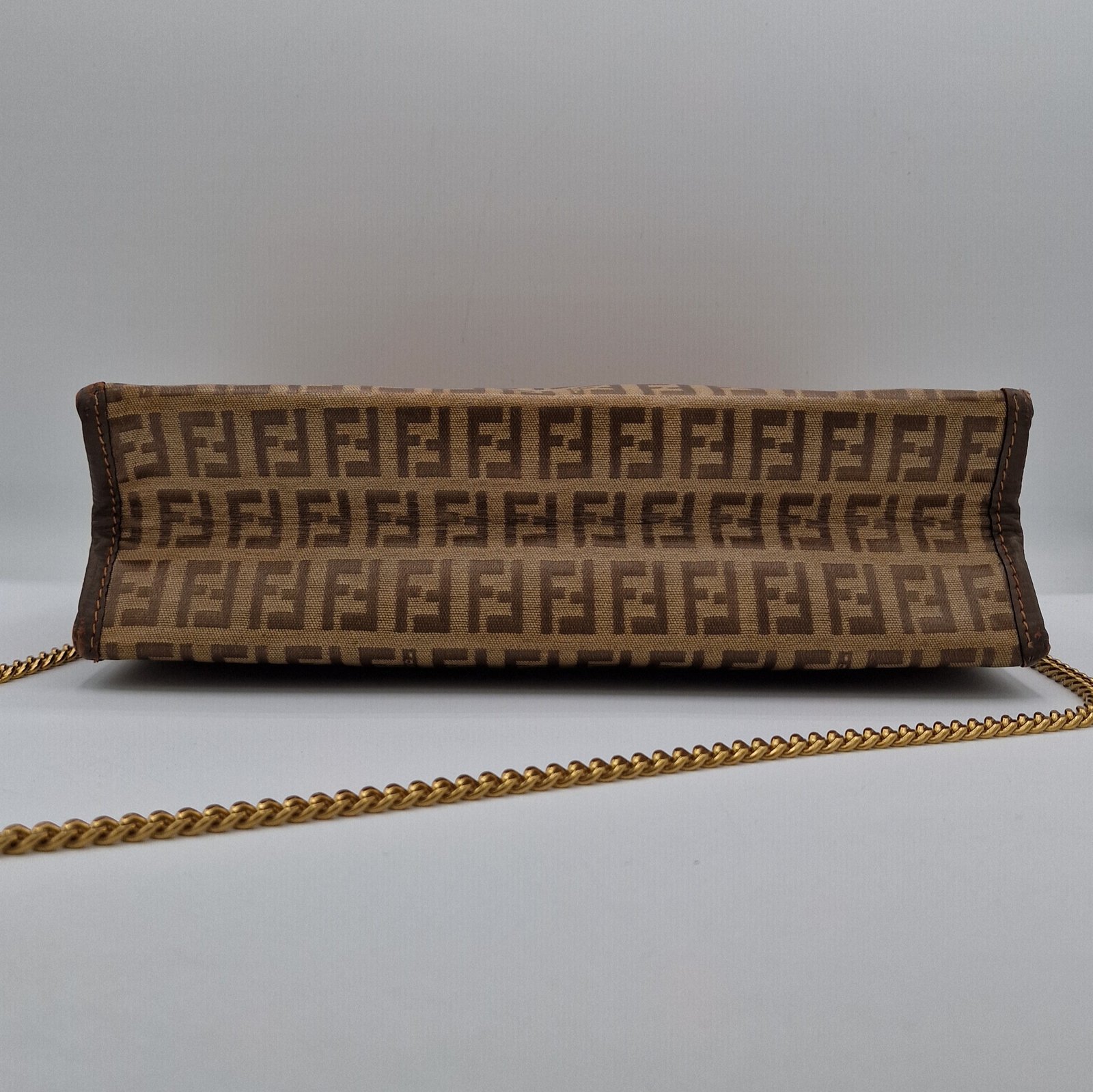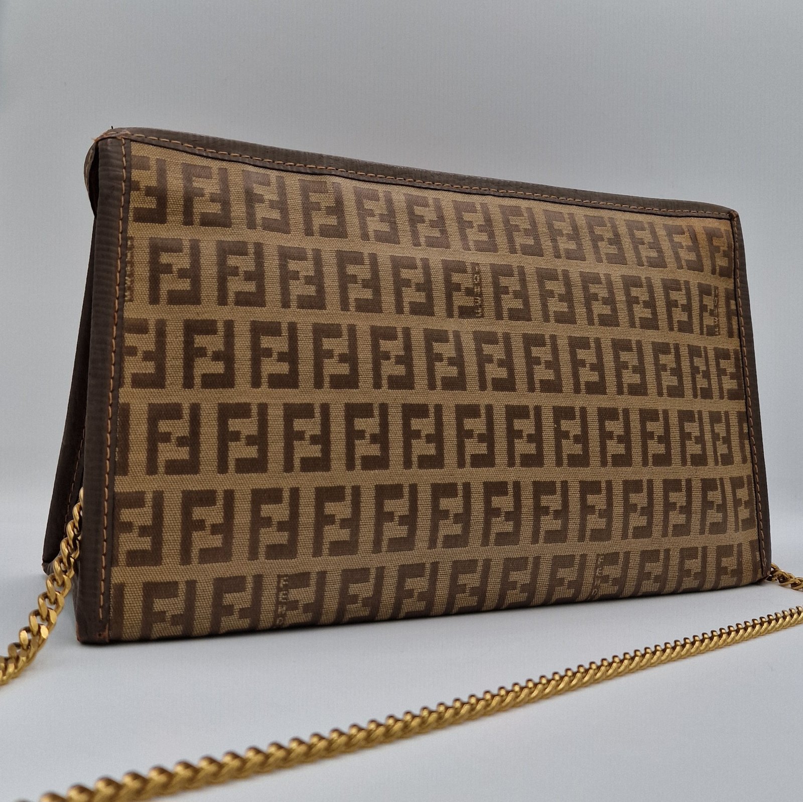 Beautiful Fendi Zucca FF clutch bag. Tone-on-tone brown color.
