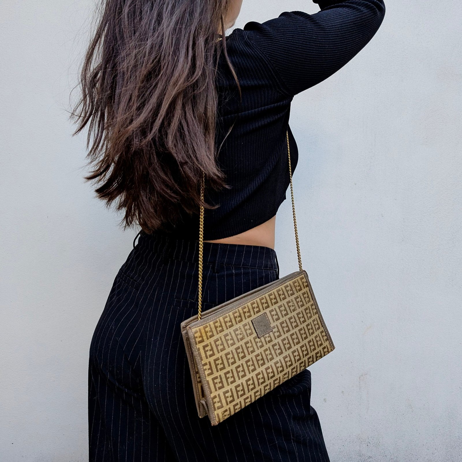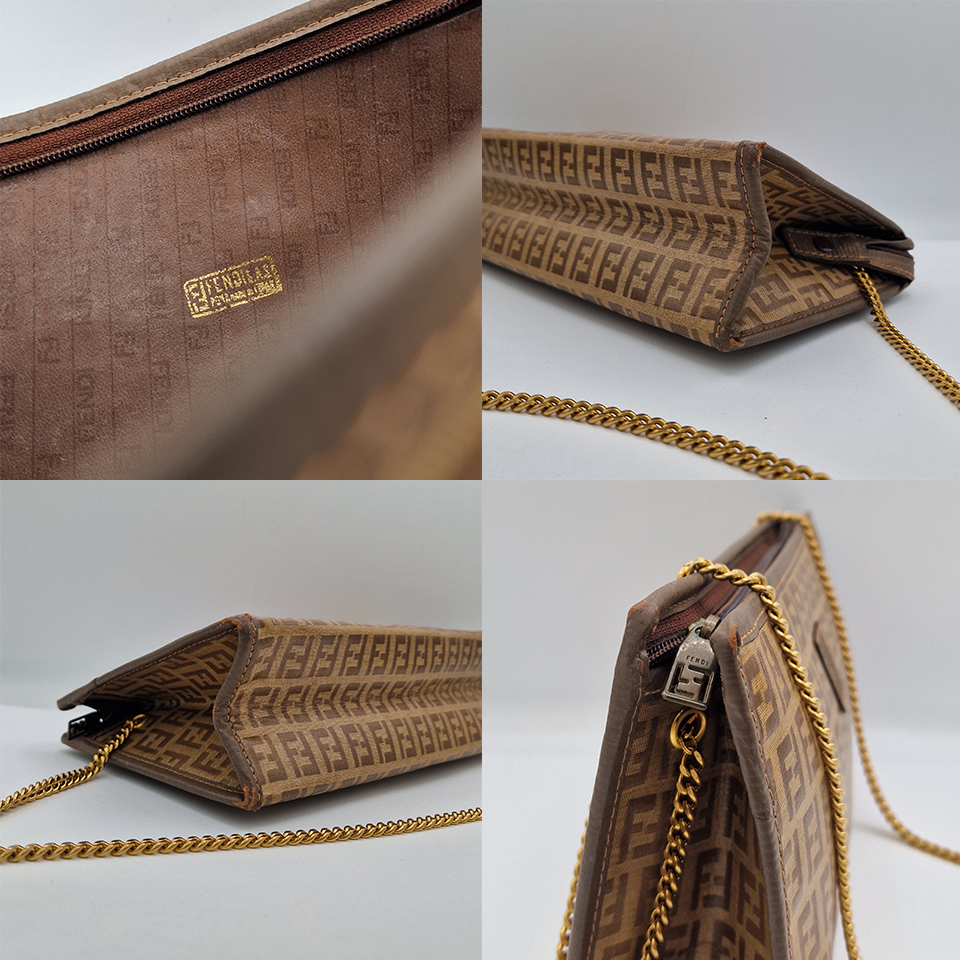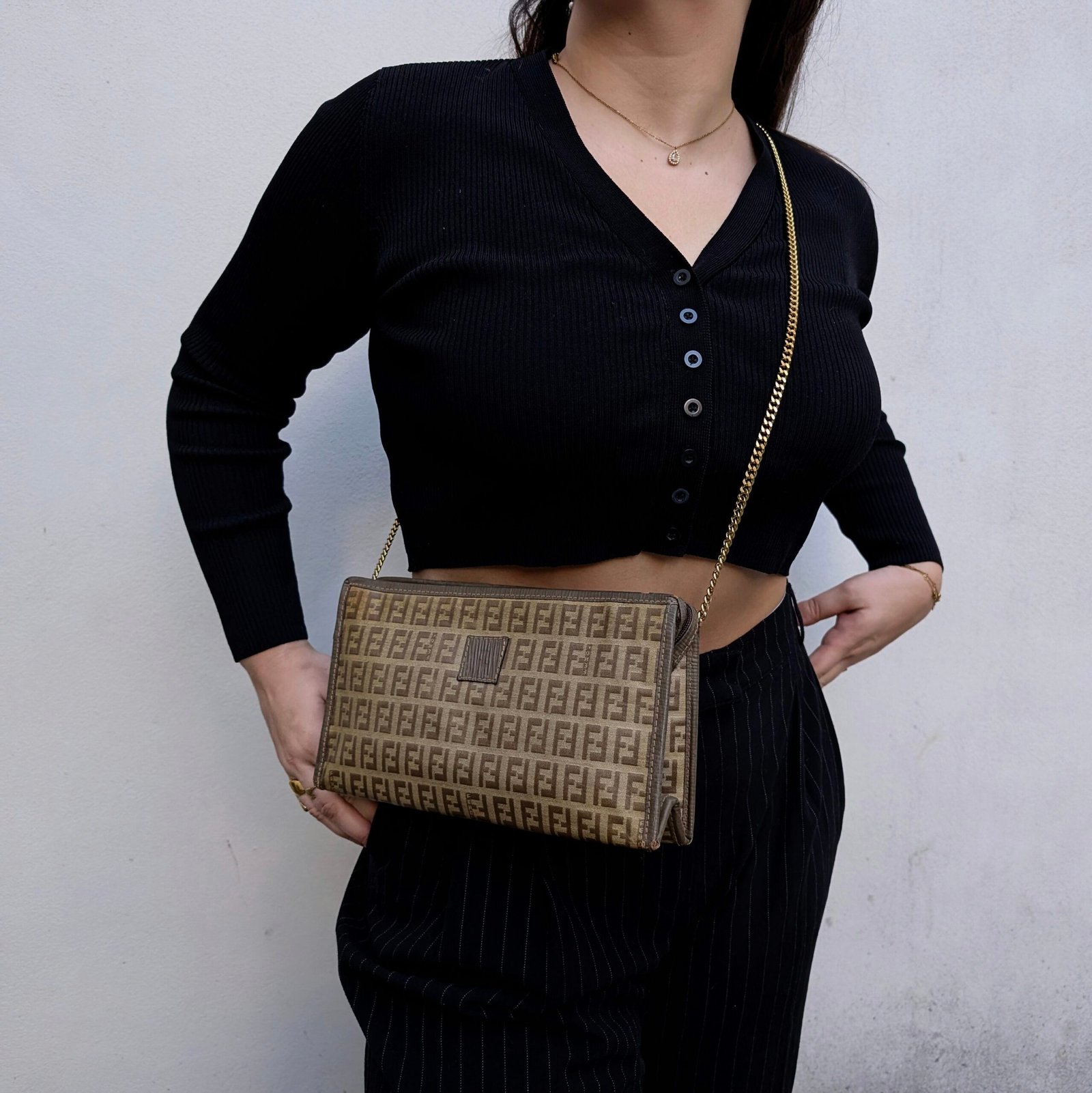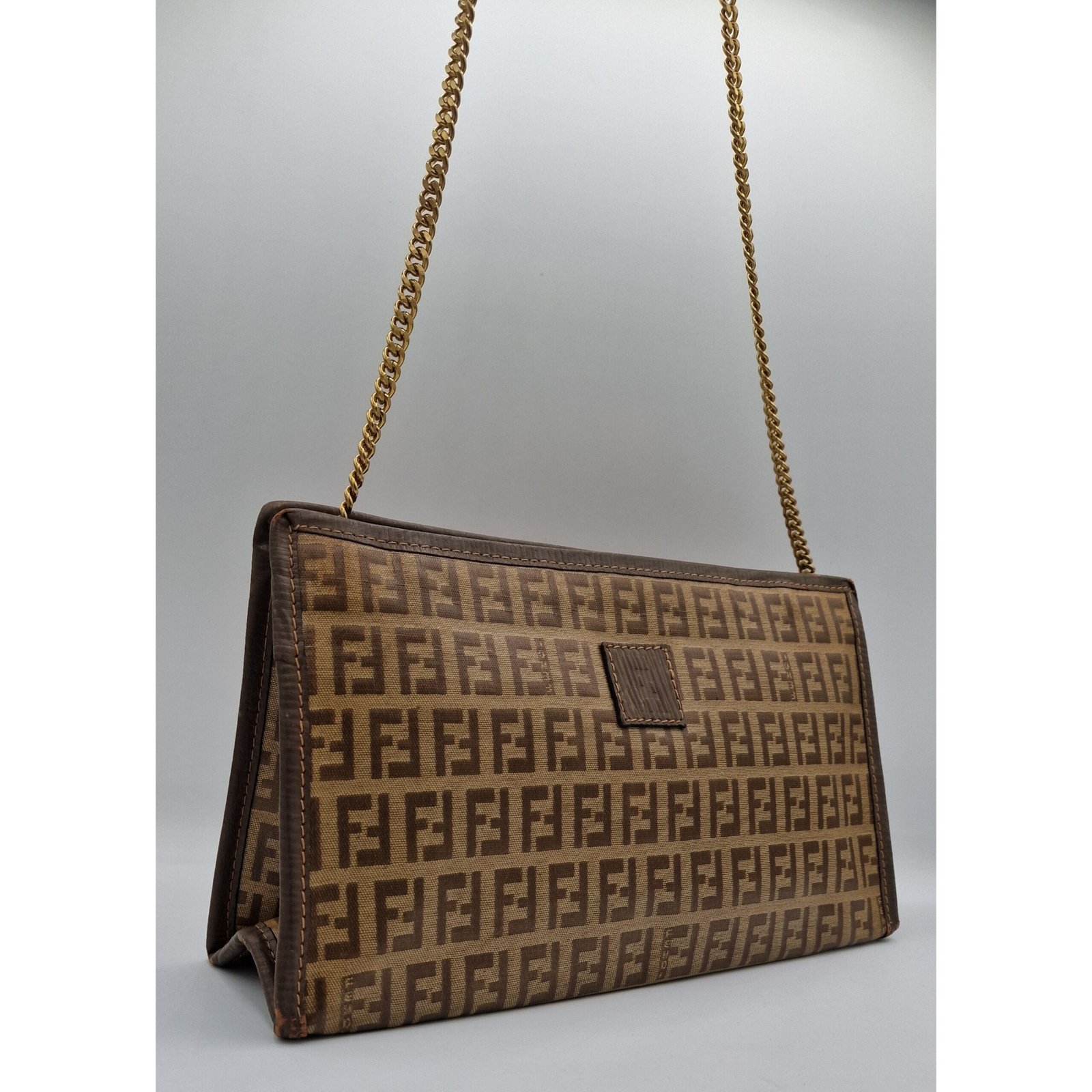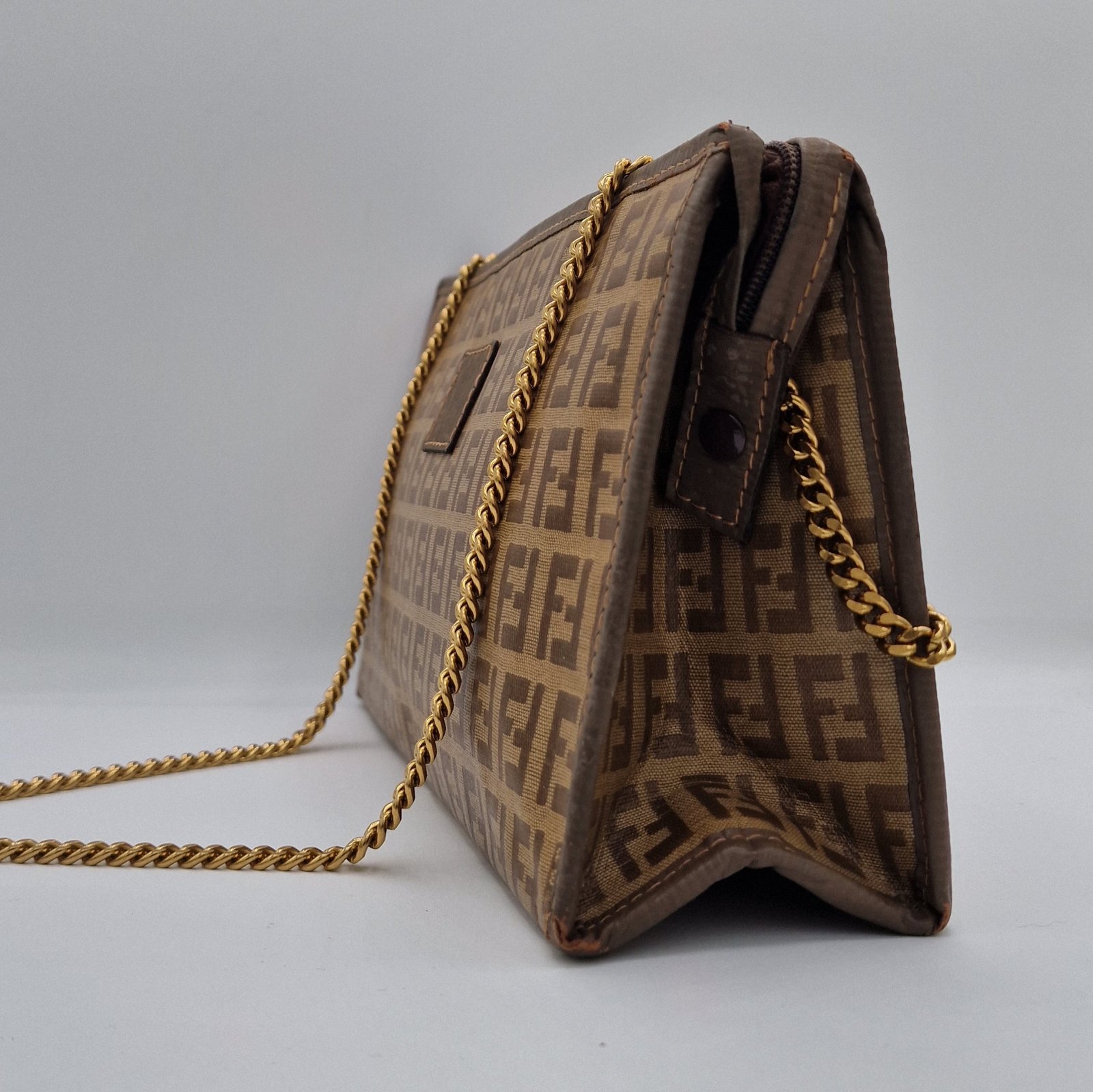 Beautiful Fendi Zucca FF clutch bag. Tone-on-tone brown color.
